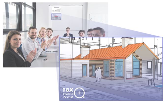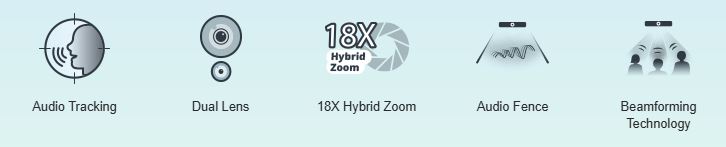 Dual Lens PTZ Video Bar With a Hybrid 18X Zoom for Medium & Large Rooms