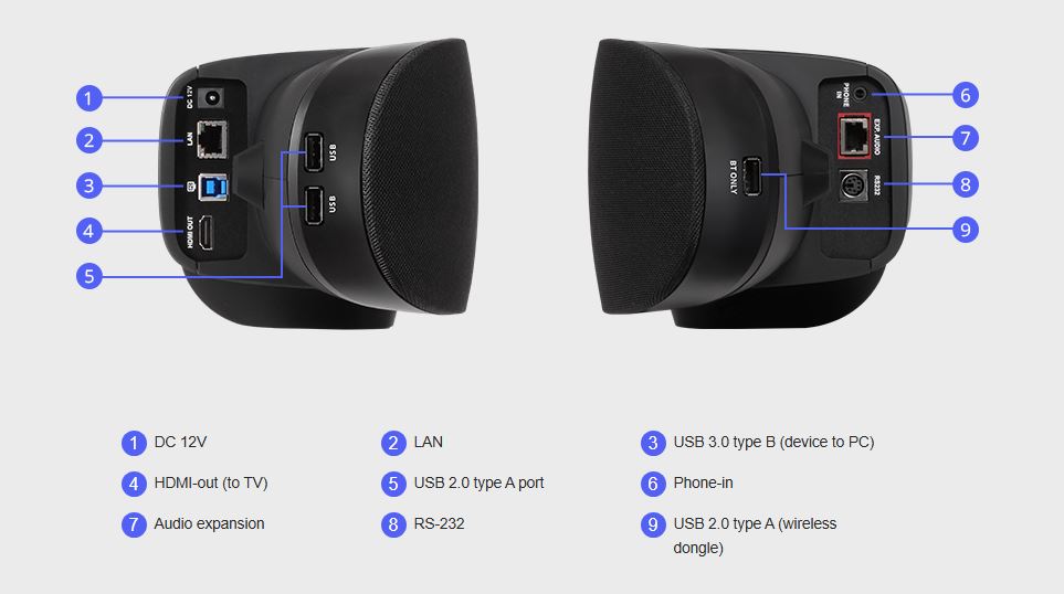 4K with HDR With Dual Touchscreens 15.6" FHD 360° camera Smart tracking and auto-framed AI Detection Algorithm 4.0 8 microphones full-duplex 10Watt , 2 Hi-Fi speaker (5.5m radius voice pickup)...