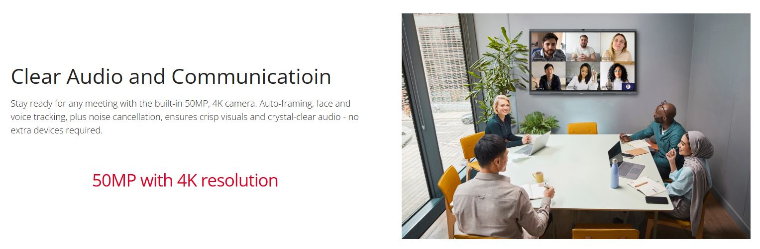 - Sony 4K Ultra HD camera sensor for advanced image processing - 6-mic array beamforming soundbar with an 11W speaker - USB Type C - Speaker : Maximum output 8W...