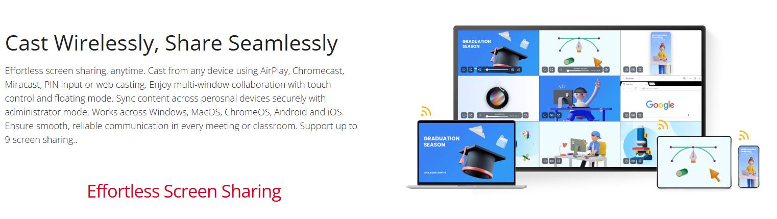 Simple LAN sharing between IFP and slot-in device: 10/100/1000M (USB Type-C 10/100, Android & PC 10/100/1000)