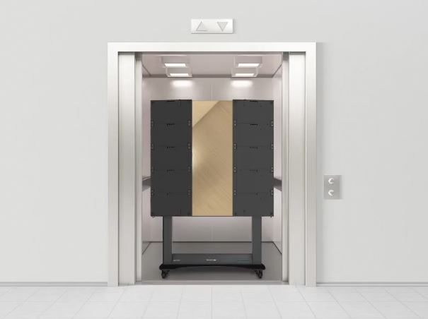 • Foldable screen that fits easily into large passenger elevators for convenient transport