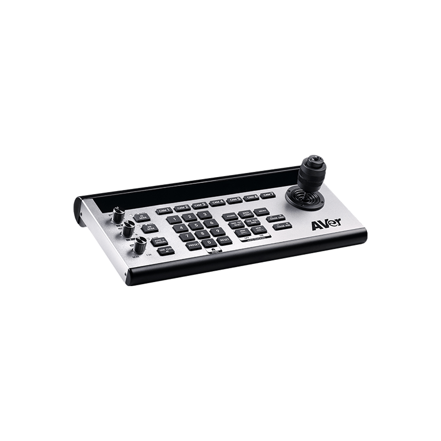 The AVer CL01 is a professional PTZ camera controller with a robust communication interface, built-in VISCA and Pelco-D/P protocols. It supports RS-422 / RS-485 / RS-232 / IP control for compatibility with most PTZ cameras. Simple configuration makes it easy to operate the 7 camera shortcut channels, 3 infinite rotation knobs, and more.