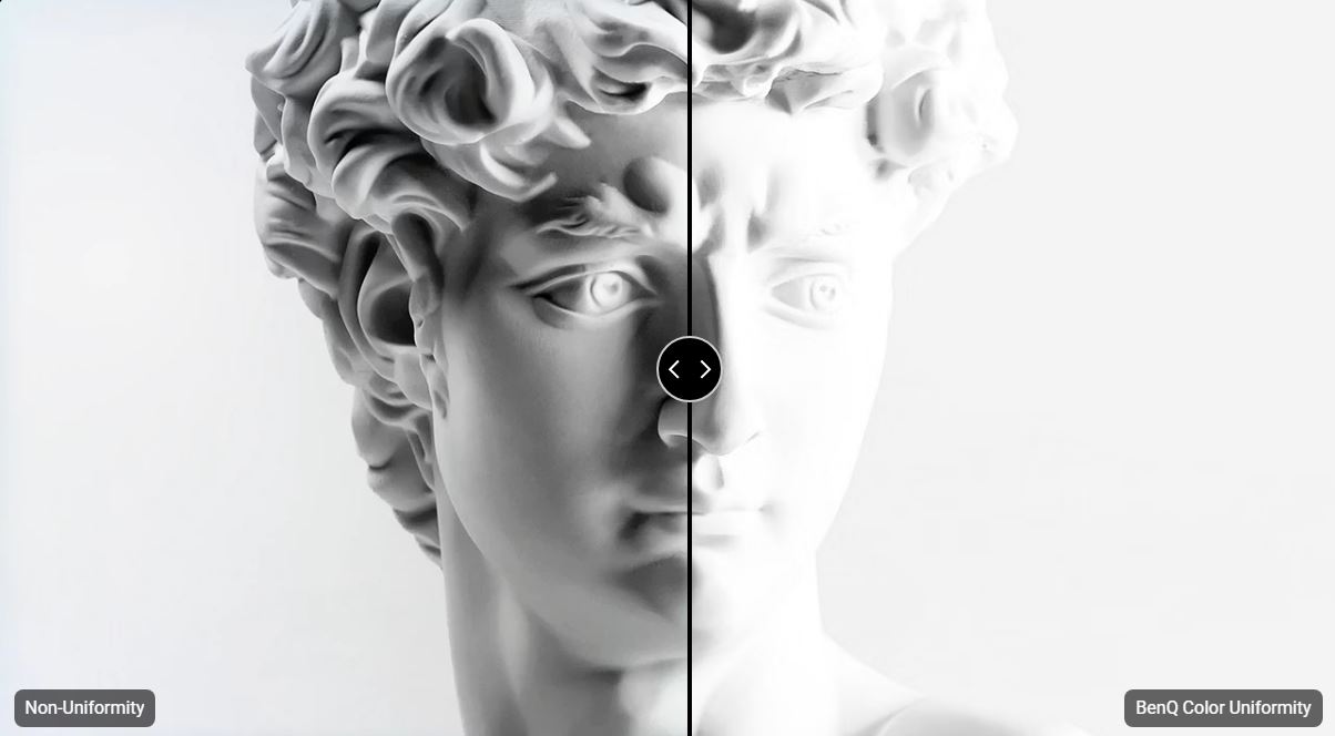 Uneven color and dim corners aren’t just annoying, they distort your work. BenQ tackles what others overlook. Through corner-to-corner calibration, we ensure consistent brightness and color across the entire screen. So whether you’re editing center frame or checking the edges, you can create with total confidence.