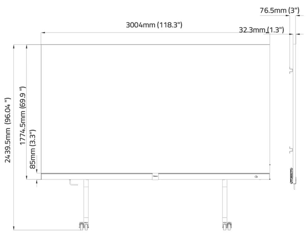 Packaging Dimensions (WxHxD): 2415 x 255 x 855mm / 95.1 x 10 x 33.7inch