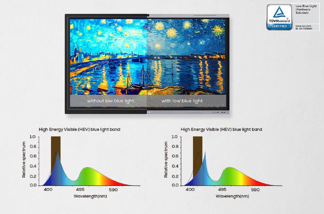 Prioritize eye health without compromising visual brilliance. Our displays feature hardware-level low blue light technology, TÜV-certified for superior eye protection. Combined with flicker-free DC dimming, you can enjoy long hours of comfortable viewing without the strain and fatigue associated with traditional screens. Learn more, see more, and protect your vision.