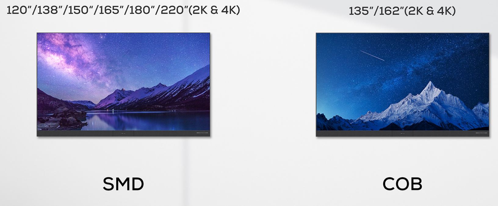 The options available range from 120″ to 220″, offering versatility to accommodate various room sizes and viewing preferences.