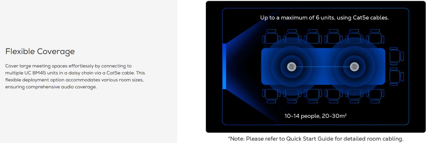 The UC BM45 features an 8-beam microphone array and advanced speakers for 360-degree voice pick-up and natural sound. With super-wideband audio and advanced echo suppression, it ensures clear communication.