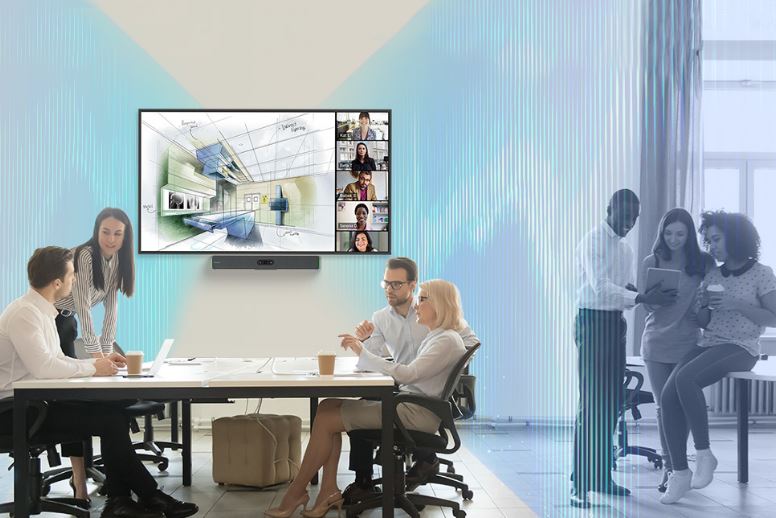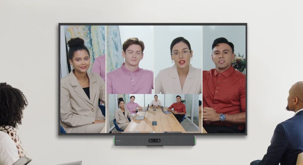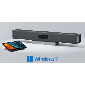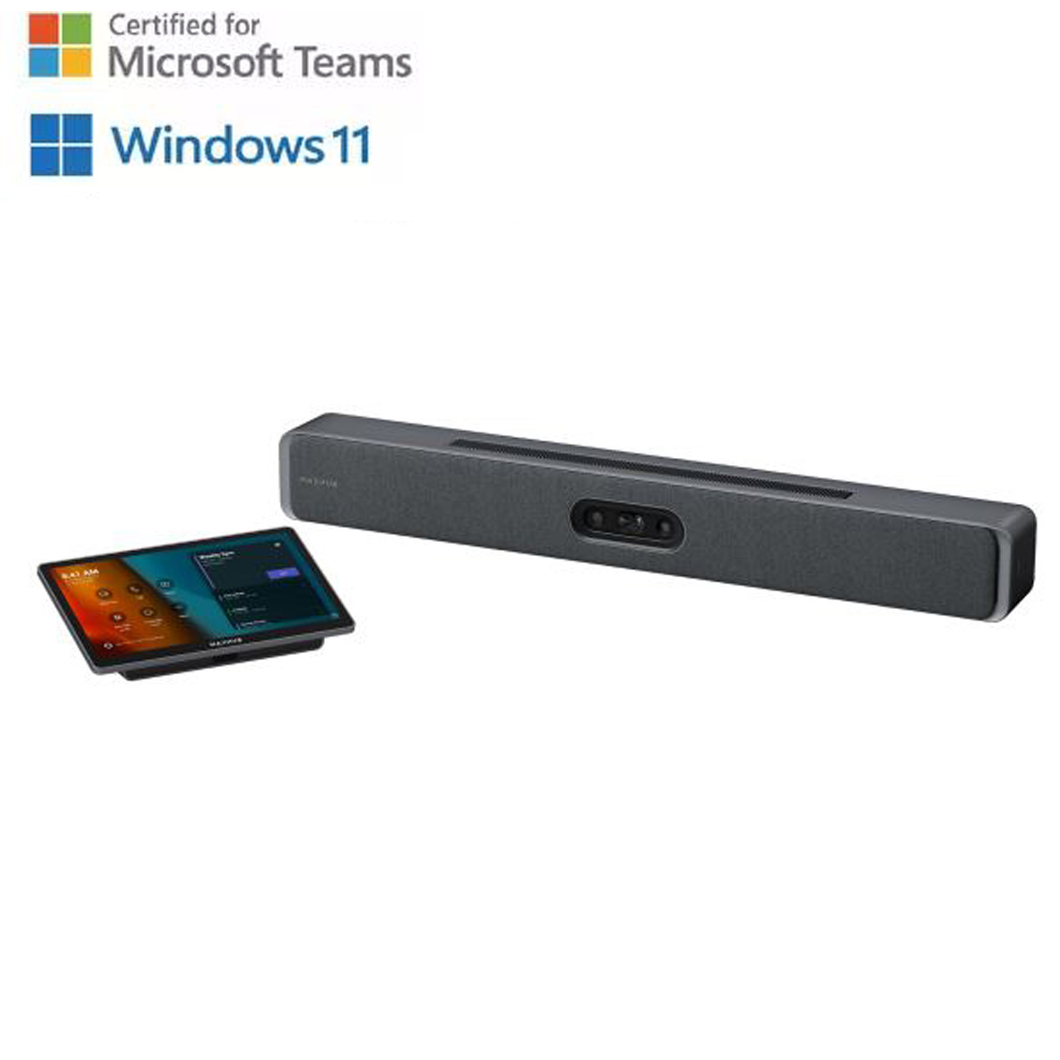 A Teams-certified MDEP Android videobar with a 100MP dual-lens camera system and FlexMount-ideal for small to medium rooms.