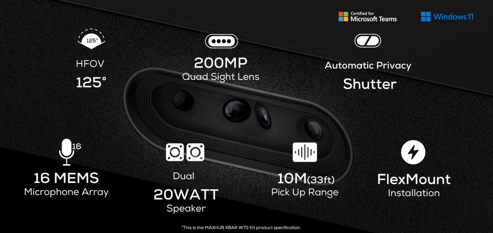 MAXHUB XBAR W70 KIT Windows-based Teams Rooms videobar with 200MP Quad Sight lens