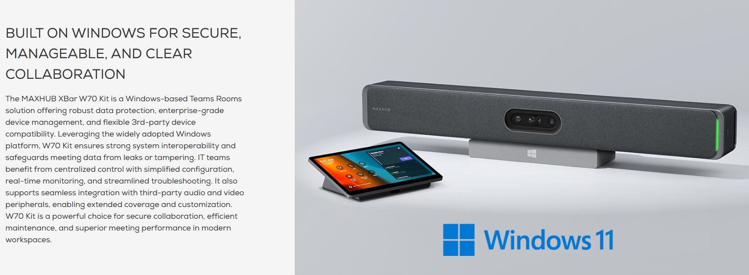 V3 Technology > Products > MAXHUB > MAXHUB XBAR W70 KIT Windows-based Teams Rooms videobar with 200MP Quad Sight lens