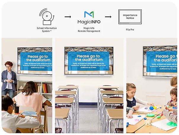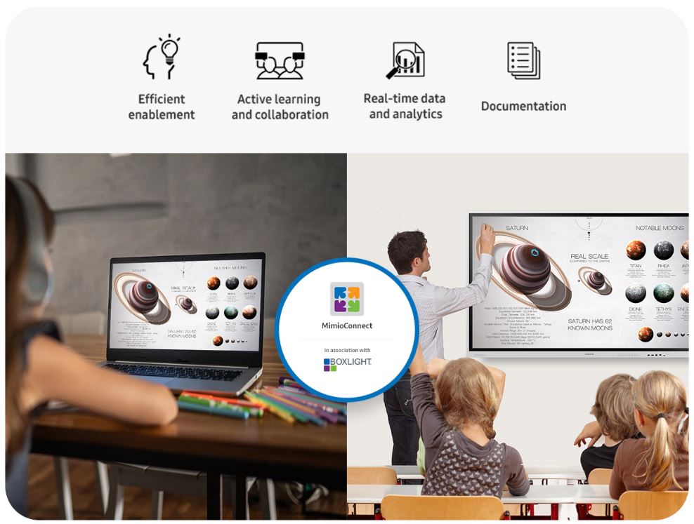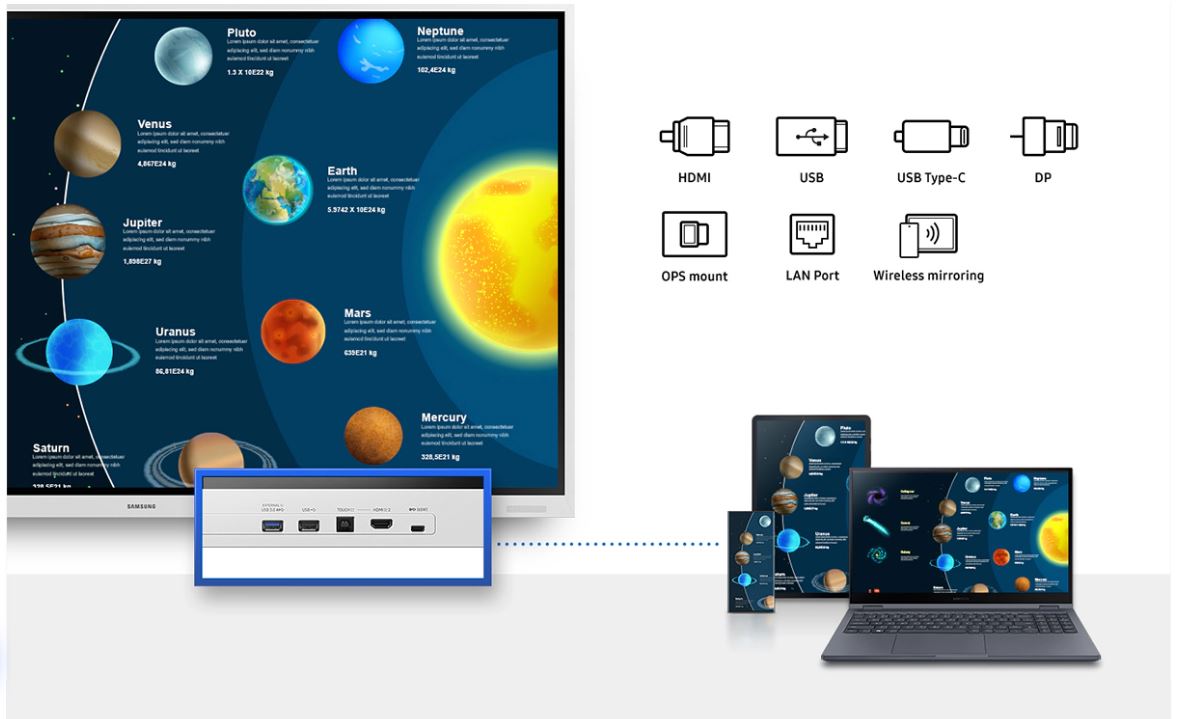 Teach and inspire, whether students are in class or at home. Introducing Samsung Interactive Pro, the premium interactive display that brings inspired learning to life. With intuitive writing, comprehensive connectivity, smart solutions, and brilliant hardware, Samsung Interactive Pro provides both educators and students with boundless resources and great flexibility to make collaborative learning shine.