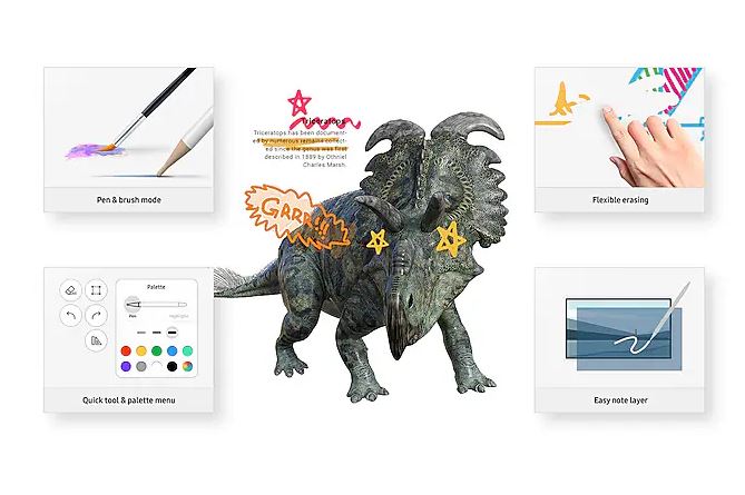 • A real-world writing experience with pen and brush mode, quick tool and palette.