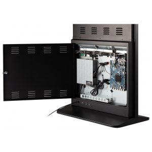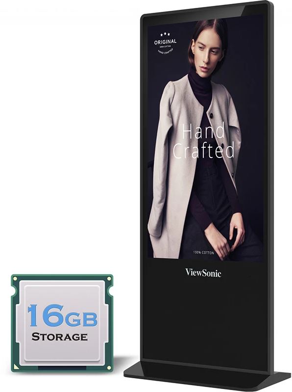 The ViewSonic EP5542T is a 10-point interactive 55” all-in-one free-standing digital ePoster kiosk with a sleek, slim design. Great for grabbing attention in busy, high-traffic areas, the EP5542T comes with a scratch-proof tempered glass faceplate for added durability. Featuring 4K resolution, 178°/178° wide-angle viewing, and dual 10W stereo speakers, the EP5542T delivers customized multimedia messaging with vivid clarity. Photo and video files can be played back using the embedded ARM media player and 16GB of internal memory, or add your own media player using the convenient media player cradle inside the lockable security door. It has build-in media playback software, as well as compatibility with ProAV control systems, make for easy management of multiple displays.